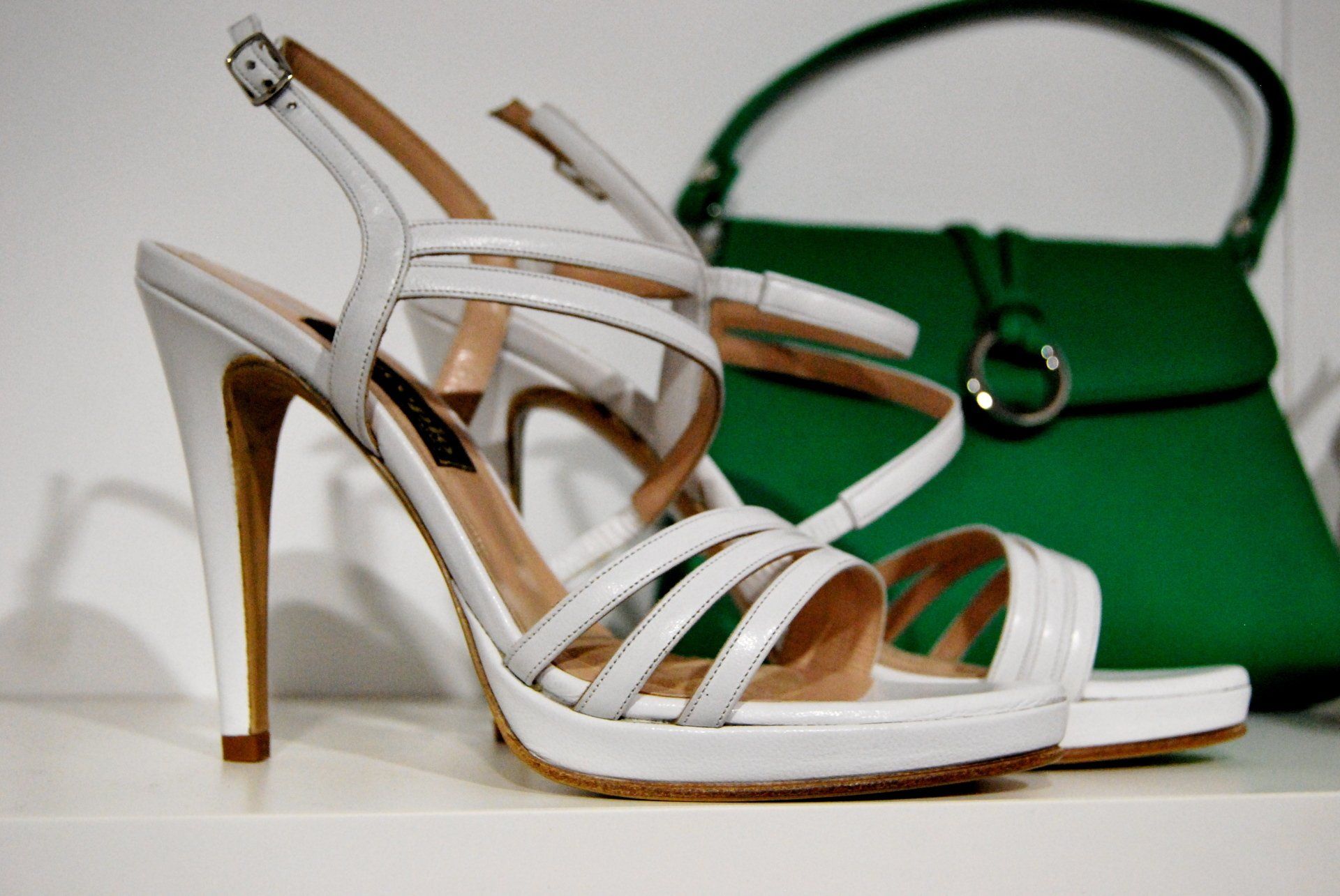 Nel laboratorio di Roma, i calzolai della ditta realizzano scarpe da sposa di diversa tipologia con tacco medio o con plateau, sandali aperti con cinturino alla caviglia e décolleté classiche.